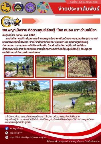 #สำนักงานพัฒนาชุมชนอำเภอพญาเม็งราย #สำนักงานพัฒนาชุมชนจังหวัดเชียงราย #ศูนย์เรียนรู้ “โคก หนอง นา” #SDGsforAll #ChangeforGood #Phaya Triple C&D #Chiangrai Clear+ #คนพญาฯ สุขใจ ใส่ใจ ดูแลกัน