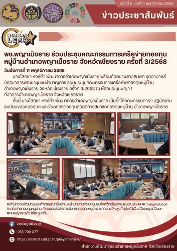 พช.พญาเม็งราย ร่วมประชุมคณะกรรมการเครือข่ายกองทุนหมู่บ้านอำเภอพญาเม็งราย จังหวัดเชียงราย ครั้งที่ 3/2568