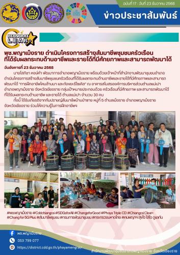 #พช.พญาเม็งราย #Cddchiangrai #SDGsforAll #ChangeforGood #Phaya Triple CD #Chiangrai Clear+ #Chang for 5G Plus #สัมมาชีพชุมชน #กรมการพัฒนาชุมชน #กระทรวงมหาดไทย #คนพญาฯ สุขใจ ใส่ใจ ดูแลกัน