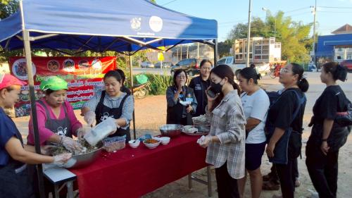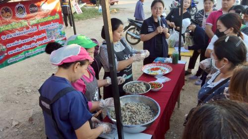 พช.พญาเม็งราย ดำเนินกิจกรรมสาธิตการทำแหนมเห็ด ตลาดนัดคนไทยยิ้มได้ อำเภอพญาเม็งราย