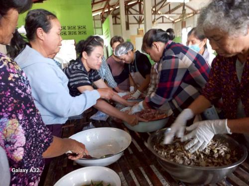 โดยได้รับเกียรติจากเจ้าหน้าที่ธนาคารเพื่อการเกษตรและสหกรณ์การเกษตร (ธ.ก.ส.) สาขาพญาเม็งราย ให้ความรู้เรื่องการออมและการบริหารจัดการทางการเงิน การวางแผนการใช้จ่ายทางการเงิน การสร้างเงินออมเพื่ออนาคต และนางปิยนุช เขียวแสนสี ปราชญ์ชุมชนบ้านแม่ต๋ำภูรี ในการฝึกอาชีพการทำ “แหนมหมู” และ “แหนมเห็ด” เพื่อให้กลุ่มเป้าหมายมีความรู้ในการประกอบอาชีพ สร้างรายได้เพิ่มให้กับครัวเรือน มีเงินเหลือเก็บ เพื่อออมไว้ใช้ในยามจำเป็น