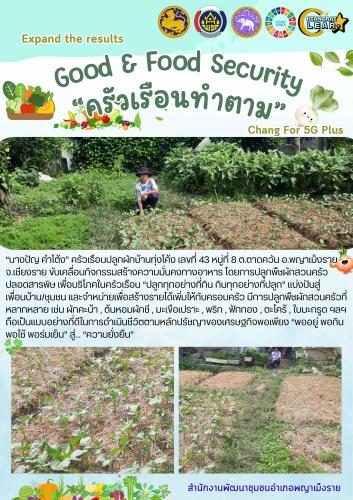 พช.พญาเม็งราย ขับเคลื่อนกิจกรรมสร้างความมั่นคงทางอาหาร ตามหลักปรัชญาของเศรษฐกิจพอเพียง "ครัวเรือนทำตาม" ครัวเรือน ที่ 1