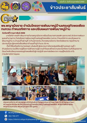 #พช.พญาเม็งราย #Cddchiangrai #SDGsforAll #ChangeforGood #Phaya Triple CD #Chiangrai Clear+ #Chang for 5G Plus #ปรัชญาของเศรษฐกิจพอเพียง #หมู่บ้านเศรษฐกิจพอเพียง #กรมการพัฒนาชุมชน #กระทรวงมหาดไทย #คนพญาฯ สุขใจ ใส่ใจ ดูแลกัน