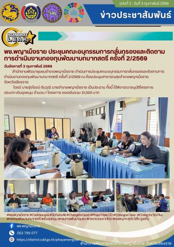 สำนักงานพัฒนาชุมชนอำเภอพญาเม็งราย ดำเนินการประชุมคณะอนุกรรมการกลั่นกรองและติดตามการดำเนินงานกองทุนพัฒนาบทบาทสตรี ครั้งที่ 2/2569 ณ ห้องประชุมสาธารณสุขอำเภอพญาเม็งราย จังหวัดเชียงราย