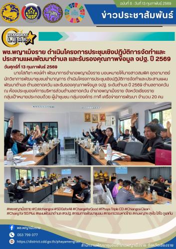 พช.พญาเม็งราย ดำเนินโครงการประชุมเชิงปฏิบัติการจัดทำและประสานแผนพัฒนาตำบล และรับรองคุณภาพข้อมูล จปฐ. ปี 2569