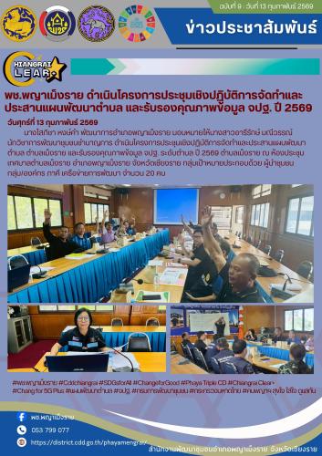 พช.พญาเม็งราย ดำเนินโครงการประชุมเชิงปฏิบัติการจัดทำและประสานแผนพัฒนาตำบล และรับรองคุณภาพข้อมูล จปฐ. ปี 2569