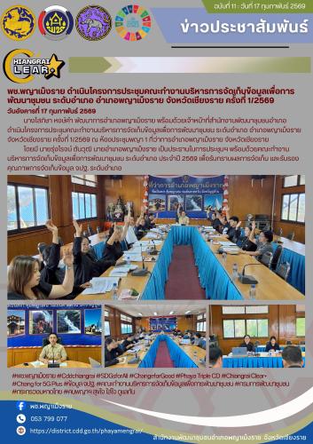 พช.พญาเม็งราย ดำเนินโครงการประชุมคณะทำงานบริหารการจัดเก็บข้อมูลเพื่อการพัฒนาชุมชน ระดับอำเภอ อำเภอพญาเม็งราย จังหวัดเชียงราย ครั้งที่ 1/2569