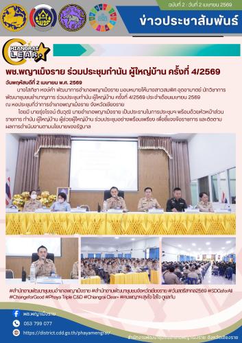 พช.พญาเม็งราย ร่วมประชุมกำนัน ผู้ใหญ่บ้าน ครั้งที่ 4/2569